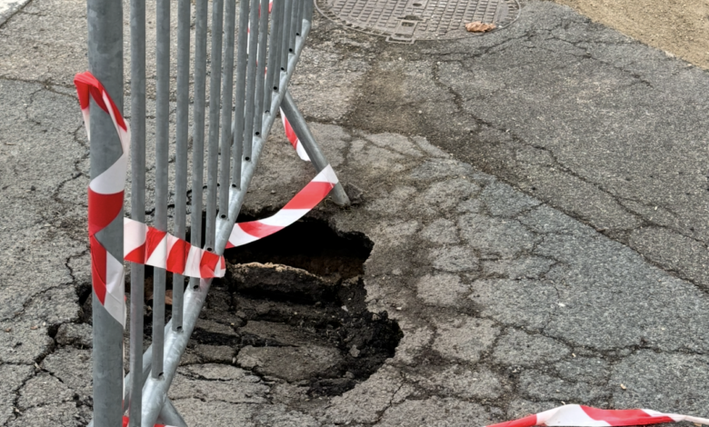 Une cavité s’est formée sous l’enrobé, nécessitant la mise en place d’un balisage de sécurité en attendant les réparations complètes. Les équipes techniques doivent encore intervenir pour stabiliser le sol et refaire la chaussée.
